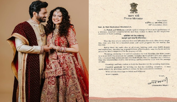 मिथुन और पलक ने अपने आधिकारिक ट्विटर अकाउंट पर प्रधानमंत्री को उनकी शुभकामनाओं के लिए धन्यवाद दिया क्योंकि उन्होंने पत्र की एक तस्वीर साझा की थी। जोड़े को आशीर्वाद देते हुए, प्रधान मंत्री ने लिखा: “जैसा कि पलक और मिथुन जीवन भर के विश्वास और एकता की यात्रा पर निकलते हैं, शादी के शुभ अवसर पर उन्हें हार्दिक बधाई और शुभकामनाएं।”