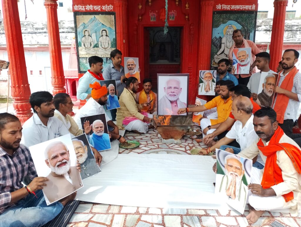 प्रधानमंत्री नरेंद्र मोदी के जन्मदिन के अवसर पर काशी नगरी में बीजेपी के द्वारा 73 मंदिरो में भजन कीर्तन का आयोजन किया गया है। वही बाबा श्री काशी विश्वनाथ धाम में पीएम के लिए विशेष हवन किया गया। उत्तर प्रदेश सरकार में मंत्री अनिल राजभर और दयाशंकर मिश्र के साथ तमाम जनप्रतिनिधियों ने विशेष हवन में शामिल हुए। वैदिक मंत्रोच्चारण के साथ बाबा श्री काशी विश्वनाथ से पीएम की दीर्घायु की कमाना किया गया।