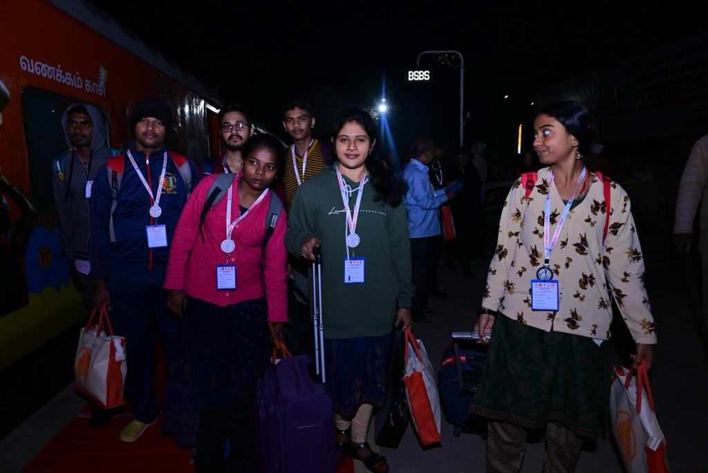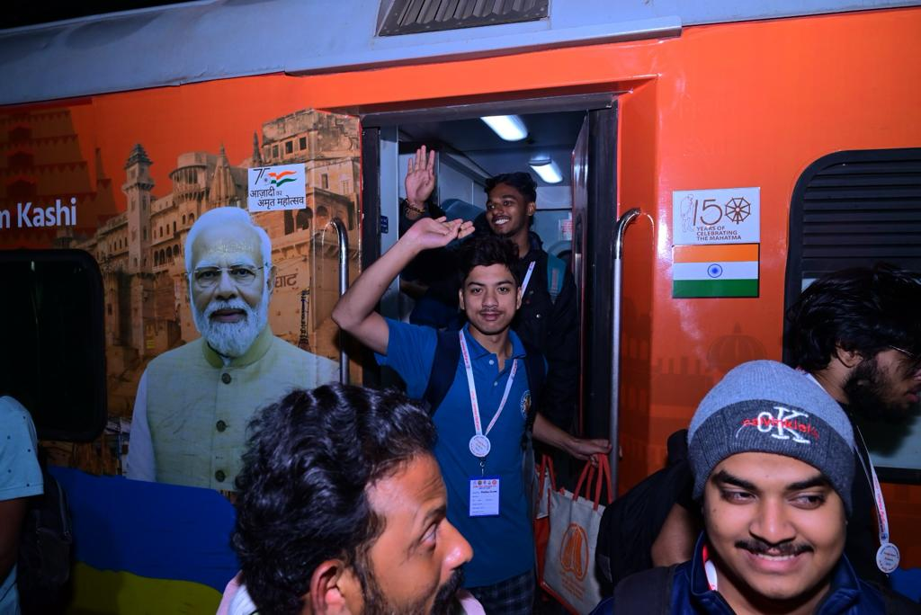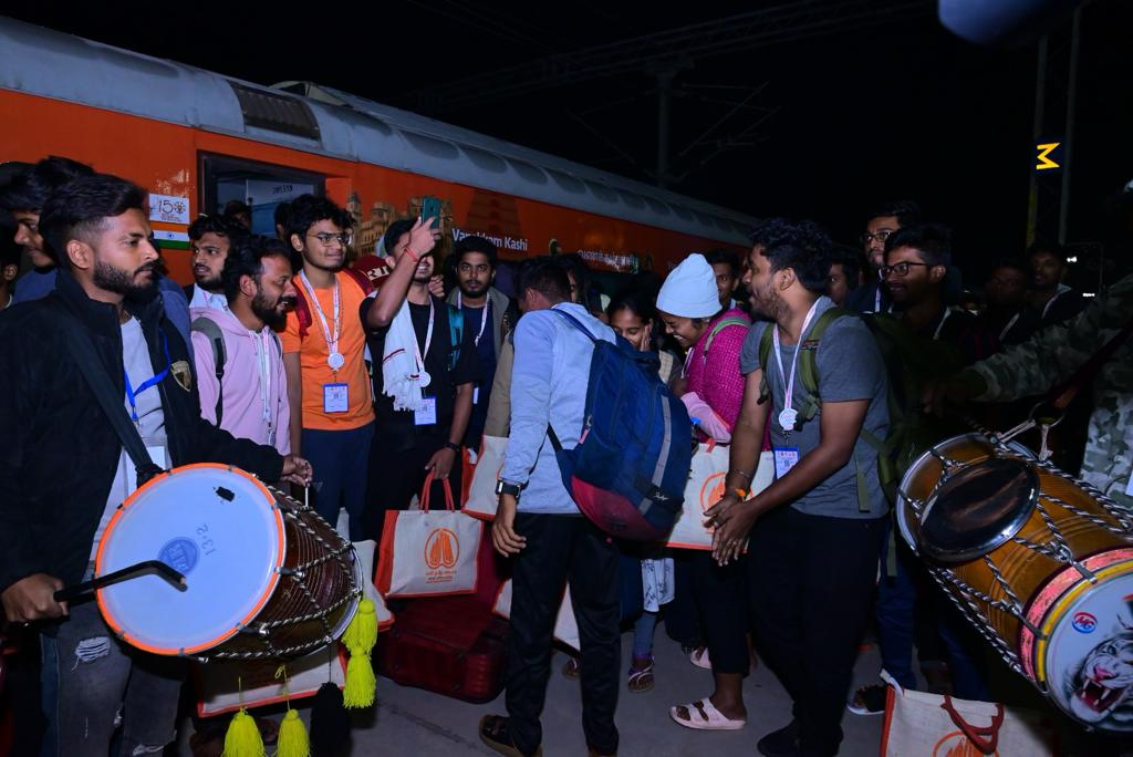 काशी तमिल संगम में हिस्सा लेने के लिए पवित्र नगरी “गंगा” के नाम पर छात्रों के पहले समूह का बनारस रेलवे स्टेशन पर उत्तर प्रदेश के आयुष मंत्री दयाशंकर मिश्र “दयालु” की अगुवाई में भव्य स्वागत किया गया। काशी में तमिल प्रतिनिधि मंडल का लोगो ने परंपरागत तरीके से स्वागत किया। तमिल प्रतिनिधि मंडल के छात्र बनारस रेलवे स्टेशन पर भव्य स्वागत से अभिभूत दिखे।