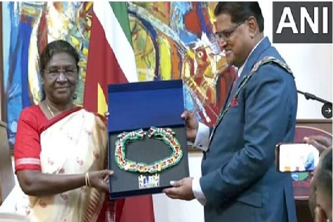 पारामारिबो; सूरीनाम ने सोमवार को राष्ट्रपति द्रौपदी मुर्मू- द ग्रैंड ऑर्डर ऑफ द चेन ऑफ येलो स्टार को अपना सर्वोच्च नागरिक सम्मान प्रदान किया, जो इस पुरस्कार को प्राप्त करने वाली पहली भारतीय हैं. मुर्मू ने सूरीनाम गणराज्य के राष्ट्रपति चंद्रिकाप्रसाद संतोखी से पुरस्कार प्राप्त किया. पुरस्कार प्राप्त करने के बाद मुर्मू ने कहा कि यह सम्मान न केवल उनके लिए बल्कि भारत के लोगों के लिए भी अत्यधिक महत्व रखता है.