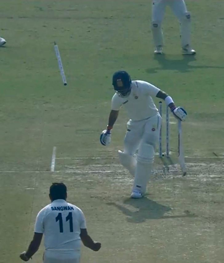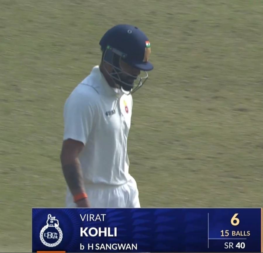 हालांकि, दूसरे दिन जब दिल्ली की टीम के दो विकेट गिर चुके थे, तब विराट कोहली ने मैदान में कदम रखा। उनकी बल्लेबाजी को लेकर दर्शकों में बेहद उत्साह था, लेकिन यह उत्साह बहुत देर तक कायम नहीं रह सका। कोहली मैदान में तो उतरे, लेकिन उनकी पारी बहुत जल्द खत्म हो गई। सिर्फ 6 रन बनाकर वह पवेलियन लौट गए। रेलवे के तेज गेंदबाज हिमांशु सागवान ने उन्हें अपनी गेंद पर चकमा दे दिया और कोहली क्लीन बोल्ड हो गए।