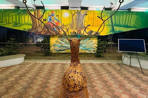 सरयू घाट से राम लला के मंदिर जाने वाले चौराहे में बड़ी सी वीणा लगी हुई है। इसे लता मंगेशकर चौक या वीणा चौक भी कहा जाता है। अयोध्या के विकास के क्रम में डबल इंजन की सरकार ने इसकी स्थापना की है। आजकल ये चौक अयोध्या का केंद्र बिंदु बना हुआ है। यहां शासन और प्रशासन के अधिकारियों के साथ साथ नेशनल और इंटरनेशनल मीडिया का भारी जमावड़ा है। जाहिर है जहां मीडिया है, वहां लोगों की भीड़ होगी ही। सैंकड़ों यूट्यूबर, रील्स मेकर यहां अपने कैमरों के साथ शूट करते दिख जाएंगे। विशिष्ट अतिथियों के साथ ही आम लोग भी यहां वीणा के साथ सेल्फी लेने के लिए आतुर दिखाई देंगे। इसके अलावा इस समय यहां विभिन्न तरह की गतिविधियां संचालित हो रही हैं। जैसे ललित कला विभाग के छात्र यहां से लेकर राम मंदिर तक सड़क पर रंगोली बना रहे। चौराहे के आस पास चाय-नाश्ते की दुकानो के कारण यहां भारी चहल पहल है।