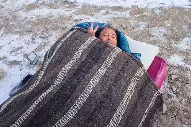 सोनम वांगचुक लद्दाख के ठंडे मौसम में भूख हड़ताल पर हैं। बर्फबारी के बाद भी सोनम ने अपना धरना जारी रखा। उन्होंने मांग की है कि लद्दाख को छठी अनुसूची में शामिल किया जाए। उन्होंने लद्दाख की रक्षा को लेकर भी कई मुद्दे उठाए हैं। लद्दाख में बर्फबारी हो रही है। वहां कड़ाके की ठंड के बाद भी सोनम वांगचुक लद्दाख में कई मुद्दों को लेकर अनशन पर हैं. वह लद्दाख की ठंडी जलवायु में योगाभ्यास कर रहे हैं। बॉलीवुड की सुपरहिट फिल्म ‘3 इडियट्स’ में आमिर खान का रोल रणछोड़स चंचड़ उर्फ ‘रैंचो’ सोनम वांगचुक से प्रेरित था।