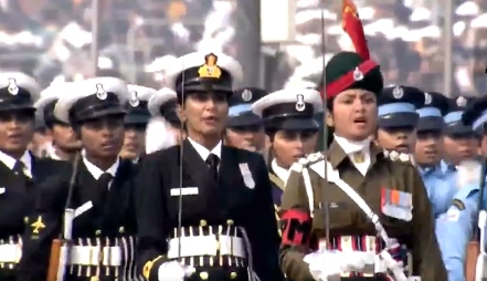 गणतंत्र दिवस परेड में पहली बार महिलाओं की त्रि-सेवा टुकड़ी ने कर्तव्य पथ पर मार्च किया। यह पहला मौका है जब तीनों सेनाओं की महिला टुकड़ी ने एक साथ मार्च किया।