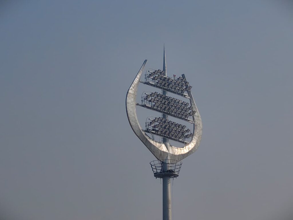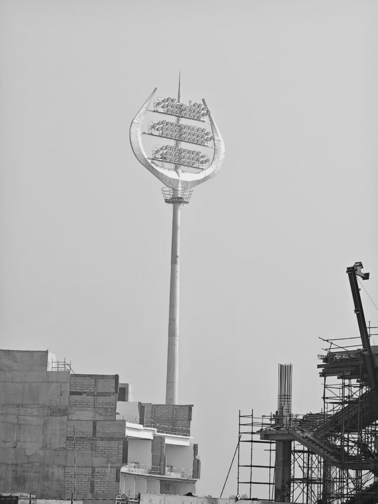 वाराणसी। उत्तर प्रदेश के वाराणसी में बन रहे अंतरराष्ट्रीय क्रिकेट स्टेडियम का काम तेजी से चल रहा है। स्टेडियम का काम करीब 75 प्रतिशत पूरा हो गया है, तो वहीं क्रिकेट का स्वरूप भी अब दिखने लगा है। करीब 450 करोड़ की लागत से वाराणसी के गंजारी में बन रहा अंतरराष्ट्रीय क्रिकेट स्टेडियम का स्वरूप दिखते ही या सुर्खियों में बन गया। स्टेडियम के फ्लड लाइट की तस्वीर सोशल मीडिया पर तेजी से वायरल भी हो रहा है। दअरसल फ्लड लाइट को लगाने के लिए त्रिशूल का आकार दिया गया है, जो करीब 2 किलोमीटर की दूरी से ही दिख रहा है। भगवान शिव के त्रिशूल के आकार पर लगे फ्लड लाइट की तस्वीर सोशल मीडिया पर खूब वायरल हो रहा है। वही भगवान शिव के त्रिशूल के आकार पर फ्लड लाइट और स्टेडियम के मुख्य गेट को डमरू का आकार दिए जाने पर संतो ने खुशी जताया है। उन्होंने काशी में भगवान शिव के त्रिशूल और डमरू को अंतरराष्ट्रीय क्रिकेट स्टेडियम में लगाए जाने पर सुमेरु पीठ के पीठाधीश्वर स्वामी नरेंद्रानंद सरस्वती ने BCCI और प्रधानमंत्री नरेंद्र मोदी का आभार जताया।