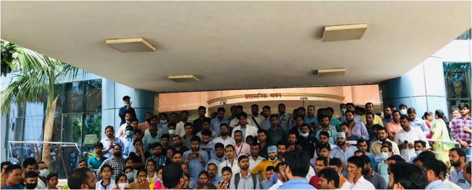 बायोमैट्रिक में गड़बड़ी से सैकड़ों कर्मचारियों की कटी तनख्वाह, नाराज कर्मचारियों ने प्रशासनिक भवन का किया घेराव