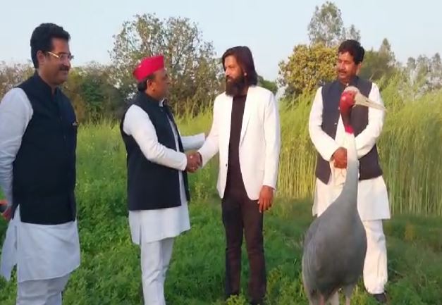 ➡️सारस पक्षी के साथ मो.आरिफ से अखिलेश ने की भेंट