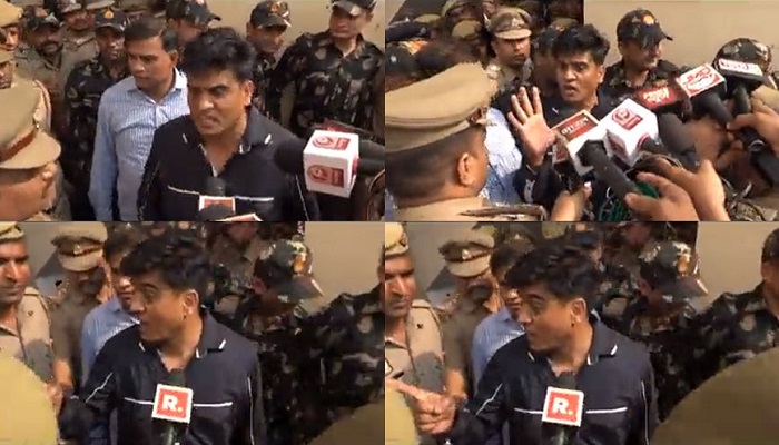 इसी बीच उन्हें किसी ने धक्का दिया जिसपर झल्लाते हुए उन्होंने मीडियाकर्मियों से कहा, “तुम लोग इनके खिलाफ क्यों नहीं चलाते हो. ये धक्का क्यों मारते रहते हैं पुलिस वाले. विधायक हैं कि अपराधी हैं हम या आतंकवादी हैं…” उन्होंने कहा, “ये पुलिसवाले बद्तमीजी करते रहते हैं, हम विधायक हैं कि क्या हैं. तुम लोग क्यों आते हो जब ये बात नहीं करने देते हैं.”