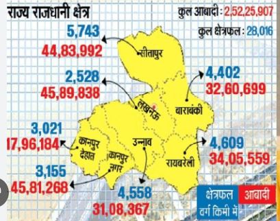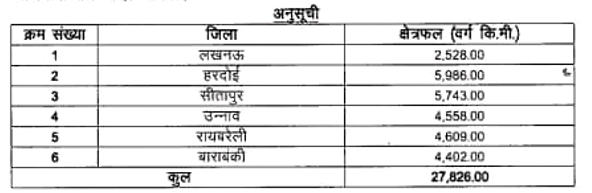 नीचे अनुसूची में यथा उल्लिखित राज्य की राजधानी और उसके आस-पास का क्षेत्र ‘राज्य राजधानी क्षेत्र’ होगा, जिसे “उत्तर प्रदेश राज्य राजधानी क्षेत्र” कहा जायेगा।