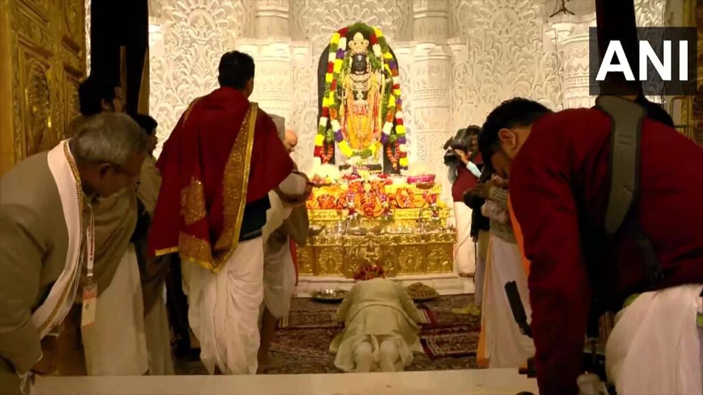 पूजा व आरती के बाद रामलला का दंडवत प्रणाम करते हुए पीएम मोदी।