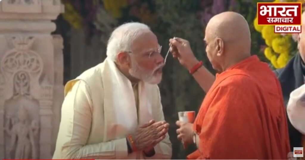 रामलला के प्राण प्रतिष्ठा के लिए आचार्य लक्ष्मीकांत दीक्षित पीएम मोदी को संकलप दिलाते हुए।