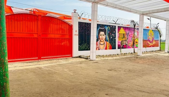 स्मृति ईरानी का बंगले का गेट गेरुआ और बाउंड्री पर रामलला, ऋषिमुनियों और अन्य कई भगवान की तस्वीरें बनी है, जो काफी आकर्षक है।