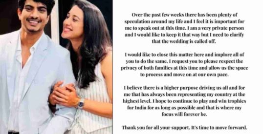 स्मृति ने कहा, मैं बहुत निजी इंसान हूं, लेकिन साफ करना चाहती हूं कि मेरी शादी रद्द हो गई है। कृपया दोनों परिवारों की प्राइवेसी का सम्मान करें।