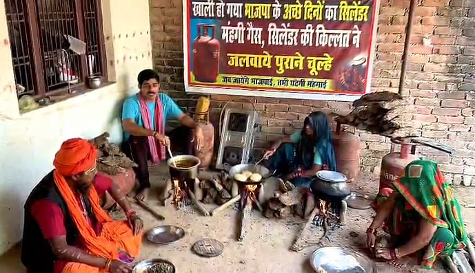 अमेठी – रसोई गैस के बढ़ते दाम व सिलेंडर की किल्लत को लेकर सपा नेता जयसिंह प्रताप यादव ने 13 मार्च को अनोखे अंदाज में विरोध जताया। सपा नेता ने ग्राम बासूपटी में ग्रामीणों के बीच लकड़ी कंडे से चूल्हे पर भोजन बनाकर प्रदर्शन किया, और सरकार पर तीखा हमला किया।