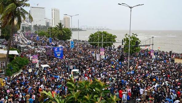 भारतीय क्रिकेट टीम की इस रेली में बड़ी संख्या में लोग शामिल हुए, इस रैली को देखने के लिए भारी मातरा में जनसैलाब उमड़ा है। मुंबई में रैली के आस पास दूर दूर तक लोगों का जमावड़ा लगा हुआ है। इस भीड़ का नजारा आप ड्रोन शॉट से देख सकते है । हर तरफ बस इंडिया-इंडिया की हूटिंग हो रही है।