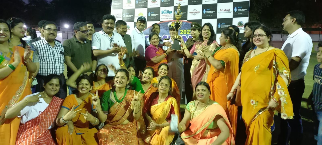 1 गोल दाग कर विनर टीम टर्यूलिप रही कैप्टन तृप्ति भटनागर, 2nd रनर अप टीम शेरनी रही कैप्टन रेखा बाथम, 3rd रनर अप टीम क्वींस कैप्टन प्रीति गुप्ता रही। सीनियर मेम्बर एसोसिएशन से जेसी सत्येन्द्र गुप्ता, कपिल गुप्ता, जगदीश अग्रवाल, अजय शर्मा, सुनील अग्रवाल, अनुपम तिवारी, मनीष बंदिल, रेणु जैन, रुचि गोयल, रश्मी जैन, डॉ गरिमा गर्ग, अंजू गुप्ता, हेमलता गुप्ता, राजेश शिवहरे, मंगेश इंदुलकर, आभार सचिव जेसी राकेश अग्रवाल ने किया।