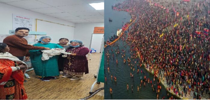 महाकुम्भनगर के सेंट्रल हॉस्पिटल में नोडल चिकित्सा स्थापना डॉ गौरव दुबे ने बताया कि सेंट्रल हॉस्पिटल में सोमवार को पहली कन्या ने जन्म लिया है। डॉ गौरव के साथ डॉ प्रमिला और डॉ पोंशी की टीम ने अपराह्न 12 बजकर 08 मिनट पर कन्या की सकुशल डिलीवरी संपन्न कराई। उन्होंने बताया कि बांदा जिले की निवासी शिवकुमारी और राजेल महाकुम्भ में जन्मी कन्या को मां गंगा का आशीर्वाद मान रहे हैं। इसी वजह से कन्या का नाम भी गंगा रखा गया है। डॉक्टर गौरव दुबे के अनुसार कन्या का वजन 2.8 किलो नापा गया है। उन्होंने बताया कि जच्चा और बच्चा दोनों स्वस्थ हैं और अस्पताल में दोनों की अच्छे से देखभाल की जा रही है। इससे पहले, रविवार सायं अस्पताल में बालक का भी जन्म हुआ था जो महाकुम्भ में पहली डिलीवरी थी।