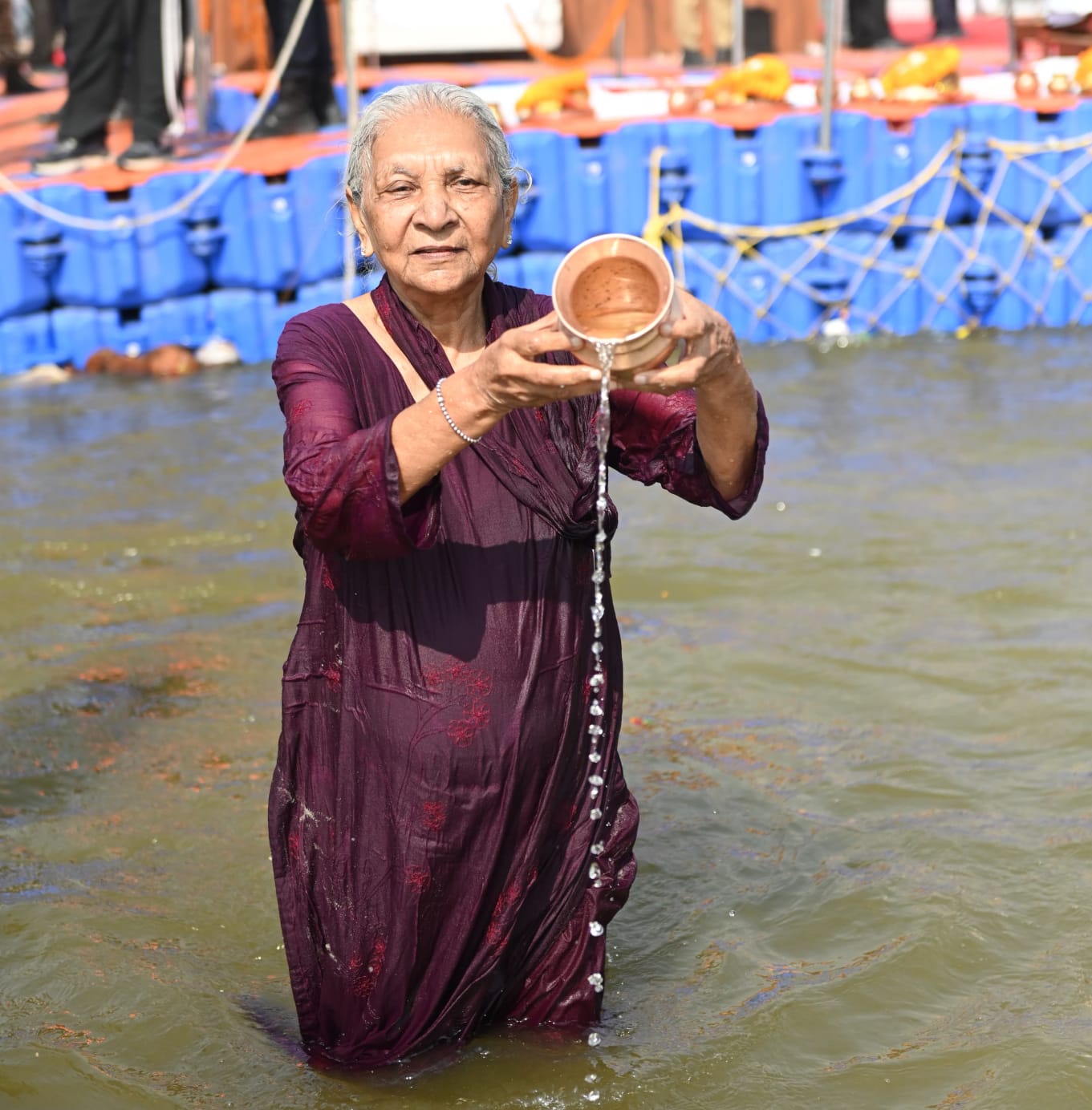 राज्यपाल आनंदीबेन पटेल रविवार को प्रयागराज एयरपोर्ट पहुंचीं। एयरपोर्ट से हेलिकॉप्टर के जरिए वह डीपीएस अरैल पहुंचीं जहां रिजर्व्ड हेलिपैड पर उनका हेलिकॉप्टर उतरा। यहां से अरैल घाट से मोटर फ्लोटिंग जेटी के जरिए वह त्रिवेणी संगम पहुंची जहां उन्होंने विधिवत स्नान व पूजन-अर्चन किया। इसके बाद मोटर फ्लोटिंग जेटी के जरिए उन्होंने किला घाट पहुंचकर अक्षयवट का पूजन-अर्चन किया। इसके उपरांत, सरस्वती कूप व बड़े हनुमान मंदिर में भी उन्होंने विधिवत पूजन-अर्चन किया।