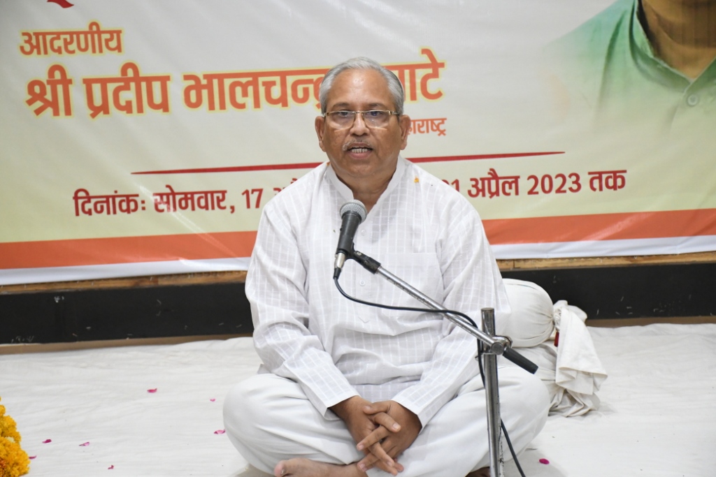 आने वाले सत्रो में हम क्रम से प्रथम स्थान पर जो ” ईशा वास्यों पनिषद ‘ है उसका अभ्यास करेंगे। कार्यक्रम के प्रारंभ में दीप प्रज्वलन प्रदीप लगाटे, सहित संस्था के अध्यक्ष अभय पापरीकर, सर्व महेश मुद्गल, राकेश दीक्षित, रामबाबू कटारे, जेपी पाठक आदि द्वारा किया गया। महाराज का स्वागत मदन गोपाल बरुआ, आदर्श शर्मा, निशीकांत सुरंगे ,आशा पापरीकर, योगेश गुप्ता आदि ने किया।