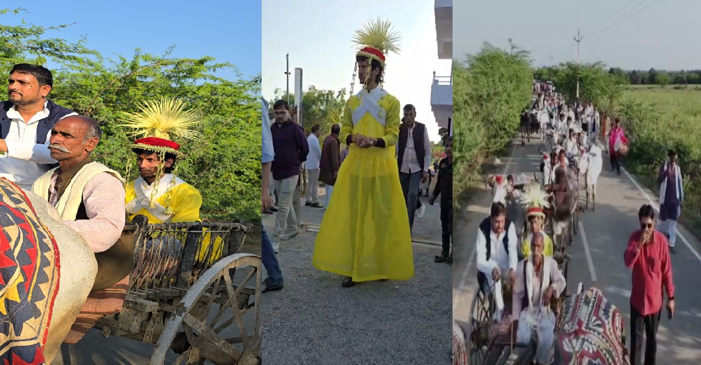 बुंदेलखंड की परंपरा में सजी बारात, बैलगाड़ियों पर सवार होकर आया दूल्हा
