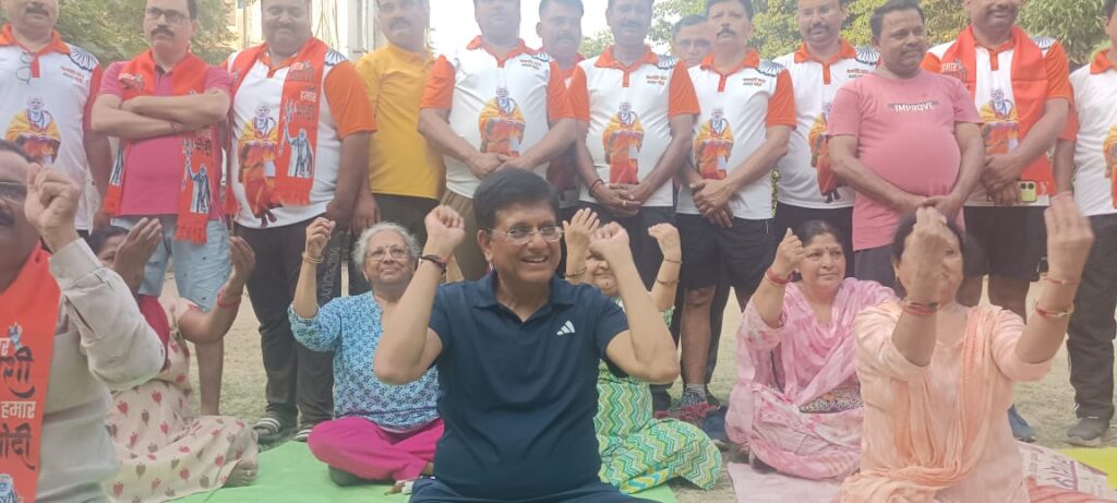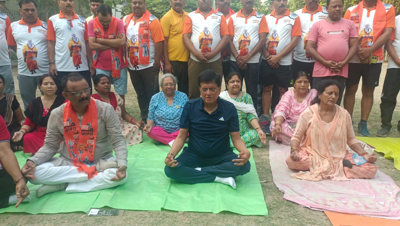 वाराणसी पहुंचे केंद्रीय वाणिज्य मंत्री पियूष गोयल सोमवार की सुबह मॉर्निंग वॉक पर नगर निगम के शहीद उद्यान पार्क पहुंचे। पार्क में केंद्रीय मंत्री को अपने बीच पाकर लोगों ने खूब सेल्फी लिया। वही एक स्थान पर महिलाओं के एक गुट को योग करता देख केंद्रीय मंत्री पियूष गोयल ने भी योग करने की इच्छा जाहिर करते हुए महिलाओं से अनुमति मांगी। पियूष गोयल महिलाओं से अनुमति मिलने पर उनके साथ बैठ योग और शांति पाठ किया। साथ ही साथ महिलाओं से पीएम मोदी को वाराणसी से रिकॉर्ड वोट से जीतने की अपील किया। वही मॉर्निंग वॉक के पश्चात पियूष गोयल चाय की अड़ी पर जा पहुंचे। सिगरा स्टेडियम के पास चाय की अड़ी पर बैठ चुनावी चर्चा कर रहे लोगो से पियूष गोयल ने भी बनारस के माहौल को लेकर चर्चा किया।
