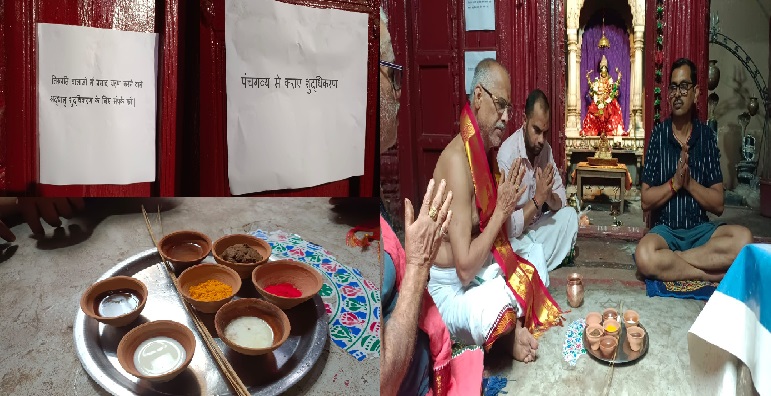 वाराणसी। आंध्र प्रदेश के तिरुपति बालाजी मंदिर के तिरुमला प्रसाद में फिश ऑयल और चर्बी मिलाए जाने की खबरों से सनातन धर्मियों में आक्रोश व्याप्त है। संत समाज इस मामले में दोषियों पर कार्रवाई करने की मांग कर रही है, तो वही प्रसाद ग्रहण करते वाले लोग आमग्लानी महसूस कर रहे है। अंजाने में मिलावटी तिरुमला प्रसाद ग्रहण करने वाले श्रद्धालुओं को प्रश्चित किए जाने के लिए धर्म की नगरी काशी में कर्मकांडी ब्राह्मण पंचगव्य से शुद्धिकरण करवा रहे है। काशी के मंदिरों में तिरुमला प्रसाद ग्रहण करने वाले लोग वैदिक मंत्रोच्चारण के साथ अपना शुद्धिकरण कर आत्मग्लानी से बाहर आ रहे है।