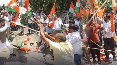 पटना में बीजेपी-कांग्रेस कार्यकर्ताओं के बीच बवाल, तख्तियों और लाठी-ईंट-पत्थर से हुई हिंसक झड़प