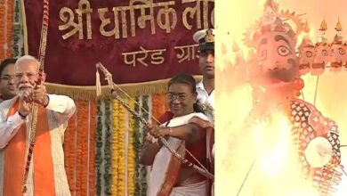 राष्ट्रपति मुर्मू और पीएम मोदी ने चलाया तीर,राम और लक्ष्मण का किरदार निभा रहे कलाकारों के माथे पर लगाया तिलक