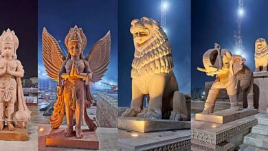 Ayodhya Rammandir :मंदिर प्रवेश द्वार पर स्थापित हुई गज, सिंह, हनुमान और गरुड़ जी की मूर्ति ,ट्रस्ट ने जारी की तस्वीरें
