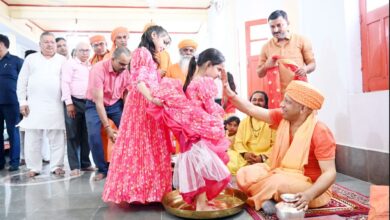 महानवमी पर कन्या पूजन, मुख्यमंत्री योगी ने कन्याओं के पांव पखारे,कहा- हर घर धन-धान्य से परिपूर्ण