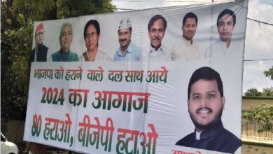 विपक्षी दलों की बैठक: सपा कार्यालय के बाहर लगी होर्डिंग, ‘2024 का आगाज 80 हराओ, बीजेपी हटाओ’