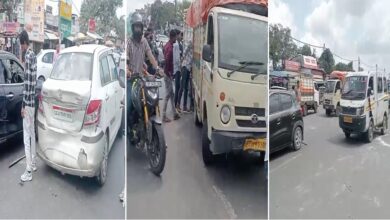 लखनऊ में 5 गाड़ियों की आपस में टक्कर, सड़क पर लगा भारी जाम, पुलिस प्रशासन मौके पर