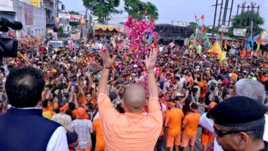 मेरठ-दिल्ली हाइवे पर सीएम योगी ने कांवड़ियों पर की पुष्पवर्षा, शिवभक्तों ने लगाए योगी-योगी के नारे