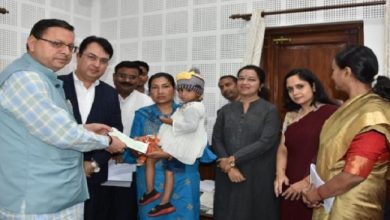 देहरादून: CM पुष्कर धामी ने मृतक सिपाही की पत्नी को सौंपा 50 लाख का चेक, सड़क हादसे में हुई थी कांस्टेबल की मौत