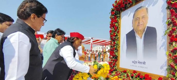 सपा सांसद रामगोपाल यादव ने मुलायम सिंह यादव की पुण्यतिथि पर अपने संबोधन में कहा आज हम सभी यहां उनके योगदान को याद करने और उनके द्वारा दिखाए गए रास्ते पर चलने का संकल्प लेने के लिए एकत्र हुए हैं। यही उन्हें सबसे बड़ी श्रद्धांजलि होगी। उन्होंने हिंदुस्तान के इतिहास में कभी जनता पर इतना अत्याचार होते नहीं देखा। यह शासन व्यवस्था घटिया है, जिसकी किसी ने कल्पना भी नहीं की थी। 2027 में हम मौजूदा सरकार को उखाड़ फेकेंगे और 2029 में दिल्ली की सरकार भी जाएगी।