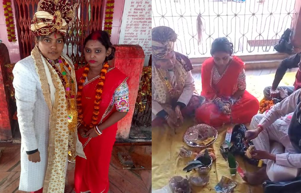 और दोनों युवतियां दो साल से पति-पत्नी की तरह रहती थी. दोनों लड़कियों ने मझौली राज में स्थित भगड़ा भवानी मंदिर में एक दूसरे के साथ शादी रचाई.मन्दिर में पण्डित ने रीति-रिवाज से इस ब्याह को कराया. दोनों ने एक-दूसरे को वरमाला डाली और मांग में सिंदूर भी भरा.दोनों ने स्टाम्प पर नोटरी शपथ पत्र बनवाकर शादी की. दोनों युवतियां पश्चिम बंगाल की रहने वाली बतायी जा रहीं है. एक लड़की का नाम जयश्री राउल है, जिसकी उम्र 28 साल है.वहीं दूसरी लड़की का नाम राखी दास है, जिसकी उम्र 23 साल है. वो अक्षयनगर रिफ्यूजी कालोनी साउथ 24 परगना वेस्ट बंगाल की रहने वाली है.