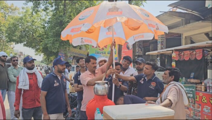 अंबेडकरनगर : अम्बेडकरनगर की प्रमुख समाजसेवी संस्था नारायण फ़ाउंडेशन ने इस भीषण गर्मी में आमजनमानस को राहत पहुँचाने के लिये एक अनोखी पहल की है। नारायण फ़ाउंडेशन के संरक्षक विवेक मौर्य के निर्देश पर संस्था ने ज़रूरतमंदों को 1100 बड़े छाते वितरित कर रही है। मंगलवार को अकबरपुर में प्रथम चरण का शुभारंभ करते हुए 250 से ज़्यादा छातों के वितरण का कार्यक्रम संस्था की ओर से रखा गया। नारायण फ़ाउंडेशन के पदाधिकारी ज़िले में विभिन्न स्थानों पर सड़कों के किनारे फल-सब्ज़ी विक्रेताओं, मोची, व अन्य ज़रूरतमंदों को बड़े साइज़ के छातों का वितरण कर रहे हैं ताकि धूप से इनका बचाव हो सके.