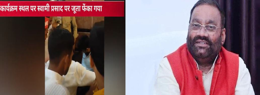 और इसी कार्यक्रम स्थल पर स्वामी प्रसाद पर जूता फेंका गया है. जानकारी दी गई है कि वकील की ड्रेस में आए युवक ने जूता फेंका था.