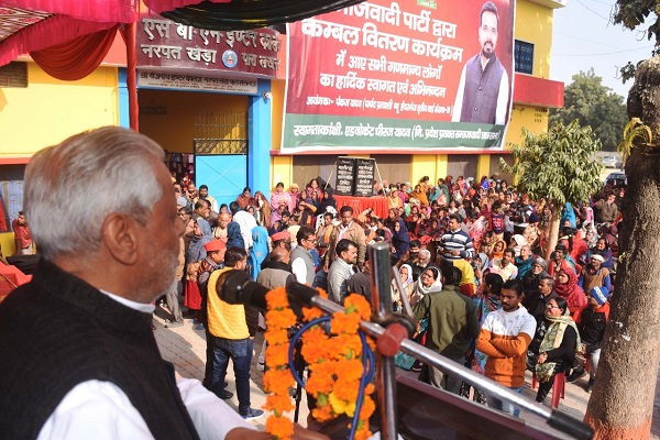 हजारों महिलाओं, वृद्धों एवं जरूरतमंदों को कम्बल और कैलेण्डर बांटे गए। कम्बल वितरण कार्य का शुभारम्भ राजेन्द्र चौधरी द्वारा गया गया। इस कार्यक्रम का आयोजन एडवोकेट धीरज यादव एवं पंकज यादव द्वारा किया गया।