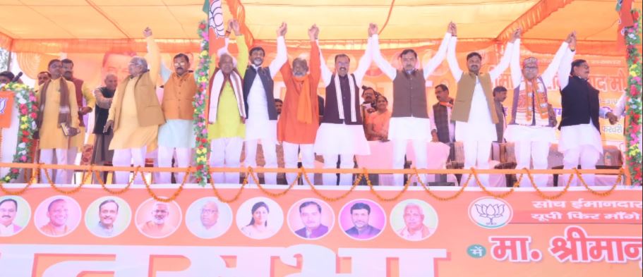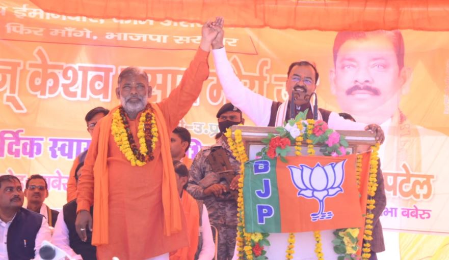 उत्तर प्रदेश विधानसभा चुनाव को लेकर आज डिप्टी सीएम केशव मौर्य आज बांदा जिले के दौरे पर है। जहां पर भाजपा प्रत्याशियों के समर्थन में जनसभा को संबोधित किया। इस दौरान केशव मौर्य ने विपक्ष पर जमकर निशाना कहा। डिप्टी सीएम कहा कि सभी विपक्षी मिलकर चुनाव लड़ रहे थे, तब भाजपा का विजय रथ नहीं रोक पाए, जनता पूरी तरह भाजपा के साथ है।