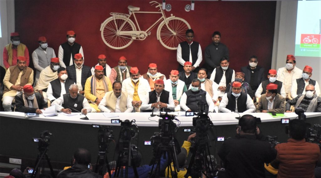 अखिलेश यादव ने कहा कि समाजवादी पार्टी के सभी नेता और कार्यकर्ता कोविड-19 प्रोटोकॉल को मानते हुए फिजिकली लोगों के घर घर जाएंगे और पार्टी का प्रचार करेंगे। सरकार बनाने के लिए वोट की अपील करेंगे। दारा सिंह चौहान ने कहा कि इस सरकार ने सबका साथ लिया लेकिन विकास कुछ लोगों का हुआ।