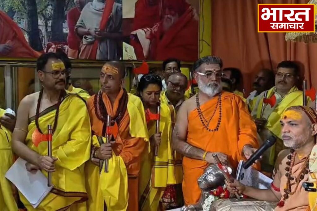 वाराणसी: उत्तर प्रदेश के वाराणसी में गंगा किनारे केदार घाट स्थित विद्यामठ में शंकराचार्य अविमुक्तेश्वरानंद सरस्वती ने सेना का गठन किया है। इस सेना में सर्व प्रथम 27 लोगो को नियुक्त किया गया, जिसका नाम चतुरंगिणी सेना रखा गया है। इस सेना के अध्यक्ष यानी सेना प्रमुख के रूप में खुद शंकराचार्य नजर आएंगे इस सेना का काम गौ हत्या के साथ सनातनियों पर अत्याचार करने वालो को पहले टोकने, रोकने के बाद अंततः ठोकने का काम किया जाएगा। इस सेना का वस्त्र पीले रंग का है और इन्हें हथियार के रूप में परशु धारण करवाया गया है।