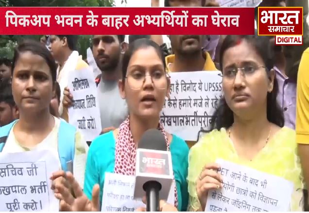 पिकअप भवन के बाहर लेखपाल के चयनित अभ्यर्थियों का घेराव लगातार जारी है। यूपीएसएसएससी के अभ्यर्थियों ने पिकअप भवन का घेराव कर रखा है। अभ्यार्थी 2021 लेखपाल भर्ती पूरी करो की मांग कर रहे हैं, अभ्यर्थियों की मांग जब तक सचिव से नहीं होगी वार्ता तब तक हम लोग यहीं रुके रहेंगे।