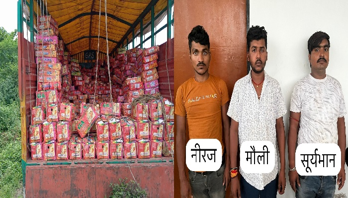 UPSTF अवैध शराब की तस्करी कर रहे तीन आरोपियों सूर्यभान, मौली और नीरज को गिफ्तार किया है। फिलहाल टीम द्वारा बाराबंकी के लोनी कटरा थाने में ट्रक समेत शराब और तस्करों को सौंप दिया है। आपको बता दें बिहार के रहने वाला सिन्टू सिंह दिल्ली से शराब लोड कर पटना भेज रहा था। वहीं इन गिरोह के द्वारा दिल्ली, हरियाणा समेत अन्य राज्यों से बिहार शराब की सप्लाई किया जाता है।