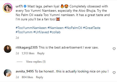 आपको बता दे की अभी कुछ दिन पहले उर्फी संजीत असगांवकर के जन्मदिन के जश्न में नजर आईं और पार्टी में वह बेहद ही हॉट ड्रेस में नजर आई थी. उर्फी की चिप्स के रैपर वाली ड्रेस पर उनके फैंस तरह तरह के कमेंट कर रहे है.कोई कह रहा है कि यह प्रचार करने का बहुत ही नायब तरीका है, तो कोई कह रहा है की ये नमकीन हमको भी खानी है.