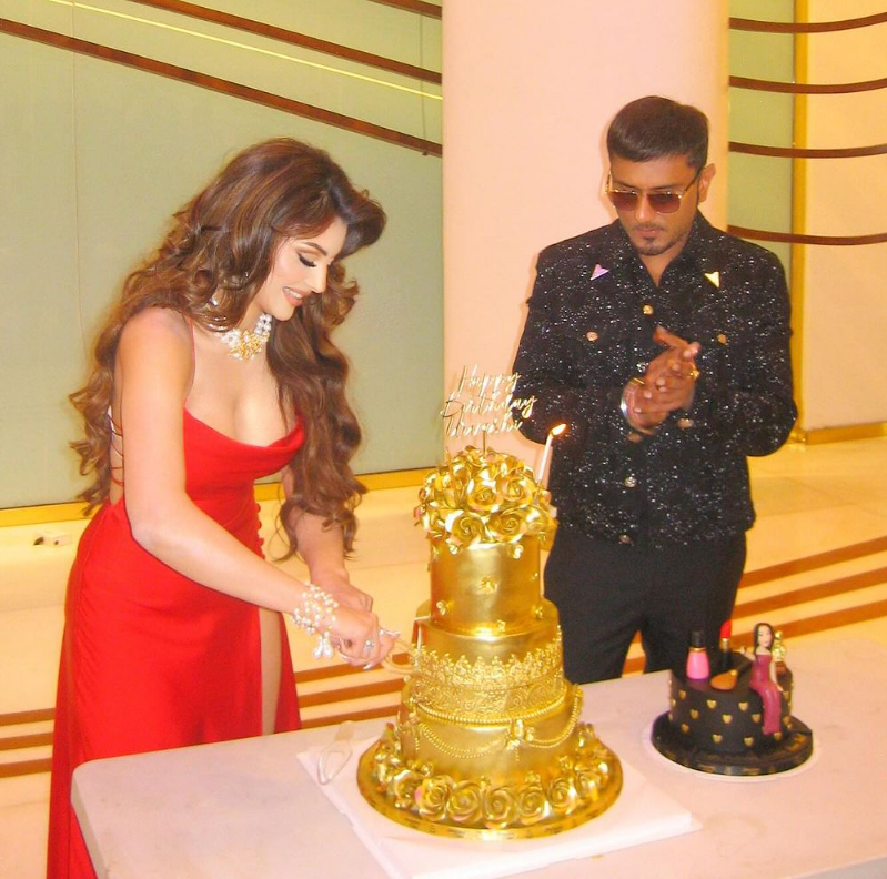 यो यो हनी सिंह ने बर्थडे पर उर्वशी को 24 कैरेट गोल्ड का केक गिफ्ट किया है. जानकारी के मुताबीक अपने जन्मदिन पर तीन फुट लंबा केक काटकर एक्ट्रेस सुर्खियां बटोर रही. ऐसे में उर्वशी रौतेला अब दुनिया का सबसे महंगा केक खाने वाली बन गई है.