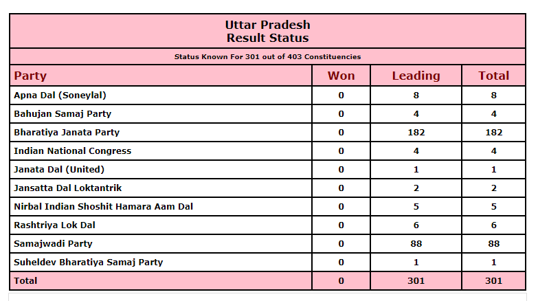 *उत्तर प्रदेश का जनादेश* (301/403)