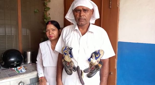 बता दें कि बाजपुर के वार्ड नंबर एक निवासी ओम प्रकाश वर्मा देर रात अपनी पत्नी के साथ बाजपुर कोतवाली पहुंचे जहां ओम प्रकाश वर्मा ने जूते चप्पल की माला पहन कर पुलिस को तहरीर देकर बताया कि वह अपनी पत्नी के साथ भगत सिंह चौक पर बीते 2 वर्षों से प्रदर्शन करते आए हैं.