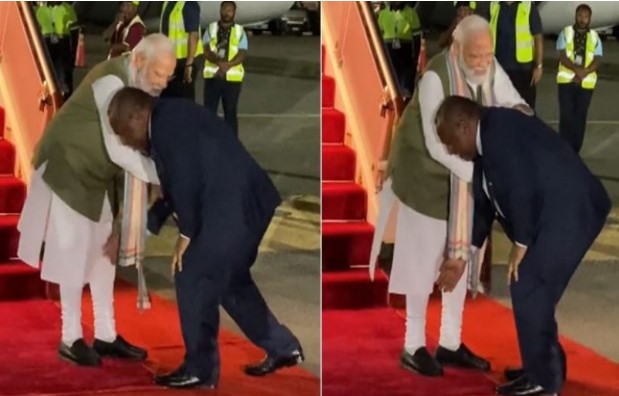 आपको बता दें कि यह वीडियो ओशिनिया के एक देश पापुआ न्यू गिनी से सामने आया है। यह एक छोटा सा देश है, लेकिन यह दुनिया का तीसरा सबसे बड़ा द्वीपीय देश है। जापान के हिरोशिमा में जी-7 बैठक में शामिल होने के बाद पीएम मोदी सीधे पापुआ न्यू गिनी पहुंचे। इस दौरान पीएम जेम्स मारापे ने जिस अंदाज में पीएम मोदी का स्वागत किया, वह भारतीयों के साथ-साथ दुनिया भर के लोगों के दिलों को छू गया। पीएम जेम्स मारापे ने पीएम मोदी के पैर छूकर उनका सम्मान किया। उन्होंने सम्मान में भारत के प्रधानमंत्री के सामने सिर झुकाया, बदले में पीएम मोदी ने भी उन्हें गले लगाया। दुनिया भर के लोग इसे न केवल भारत के बढ़ते प्रभाव के रूप में देख रहे हैं, बल्कि इसे भारतीय संस्कृति के प्रसार का एक रूप भी मान रहे हैं।