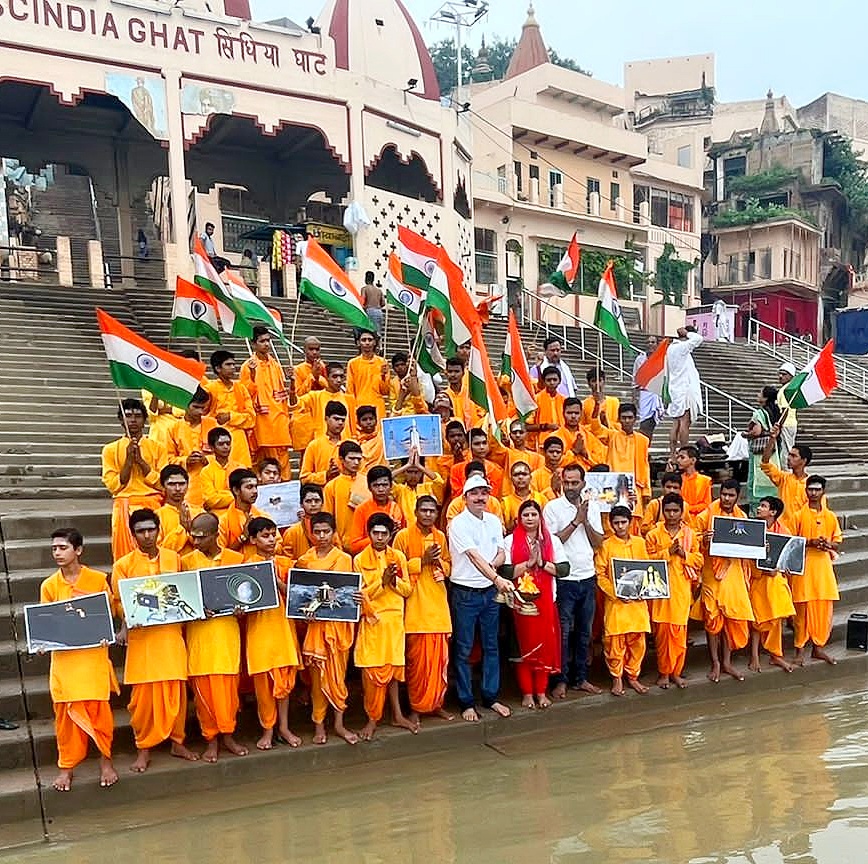 वहीे बाटुको के साथ काशी के लोगों ने तिरंगा लेकर भारत की सफलता के लिए वैदिक मंत्रोचारण के साथ मां गंगा की आरती उतारी। बाटुको ने मां गंगा से चंद्रयान -3 की सफलता के लिए अराधना करते हुए दुग्धाभिषेक किया।